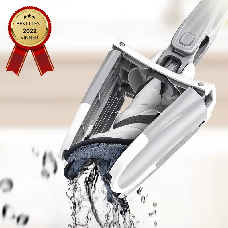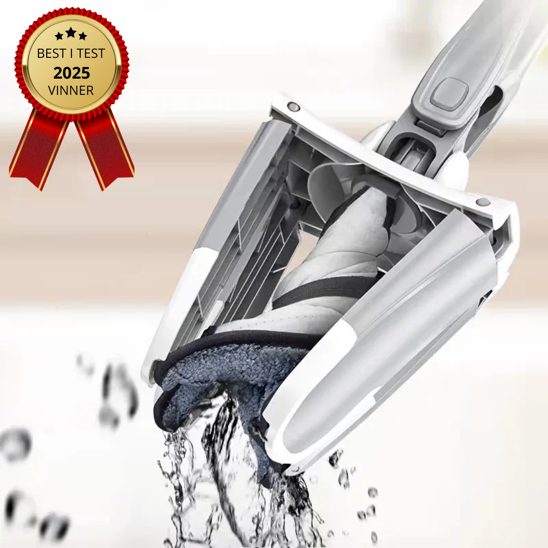 "Det her er moppen du ikke visste at du trengte. Den er en perfekt kombinasjon av en “vanlig” mopp og Swiffer. Håndtaket er langt men fortsatt veldig lett. Mikrofibermoppene er veldig solide og beveger seg lett over parketten vår. For å vri opp dytter man bare på nedre del av skaftet, super lett. Her får man virkelig vasket bort ALL skitten på gulvet og man får veldig mye for pengene!"